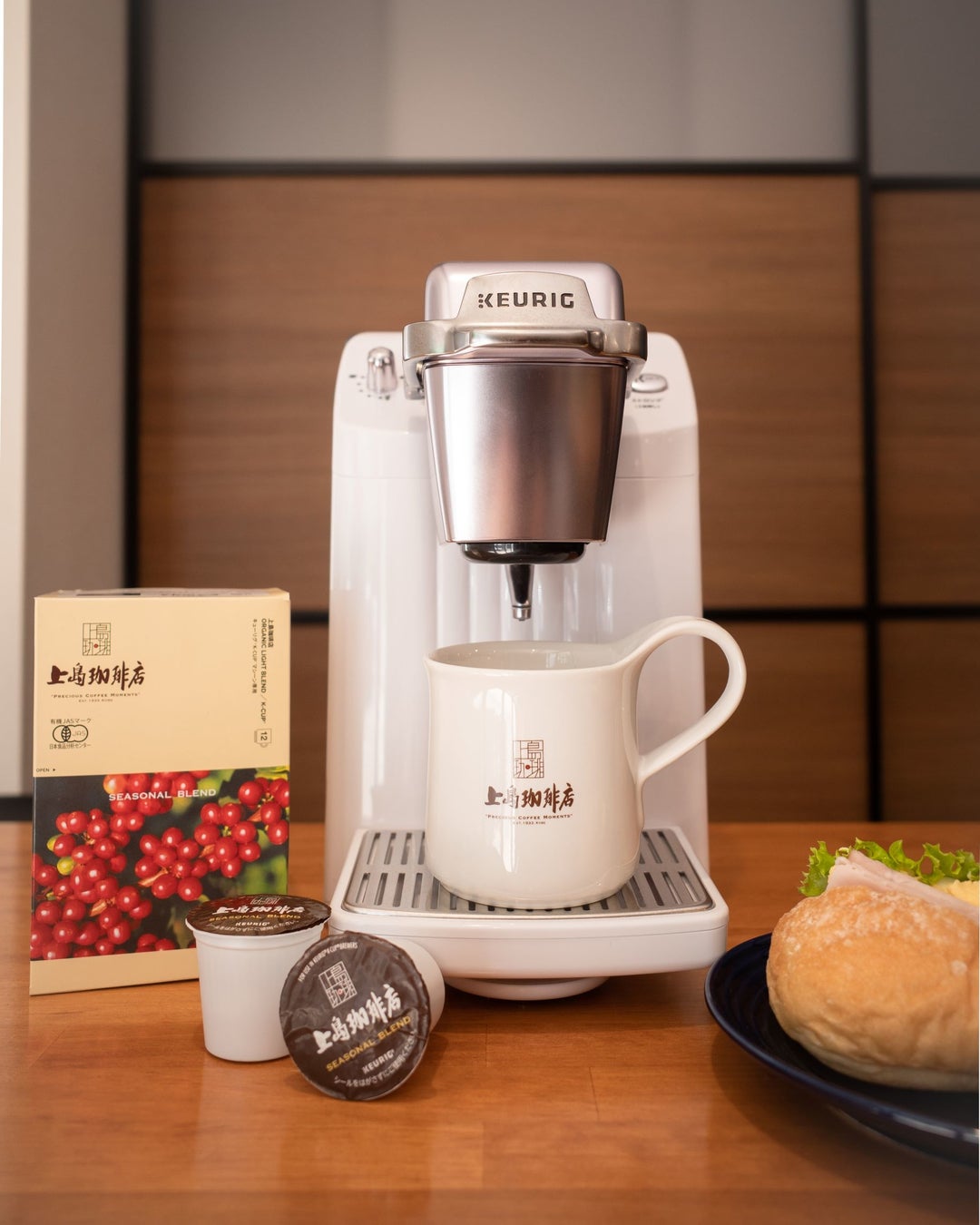 今回これまで両社で行ってきた取り組みを経て、上島珈琲店の味わいやこだわり、想いを、より裾野を広げて届けるべく、KEURIGでしか飲むことができない極上のライトブレンド「上島珈琲店 浅煎り有機ブレンド」カプセルを開発いたしました。