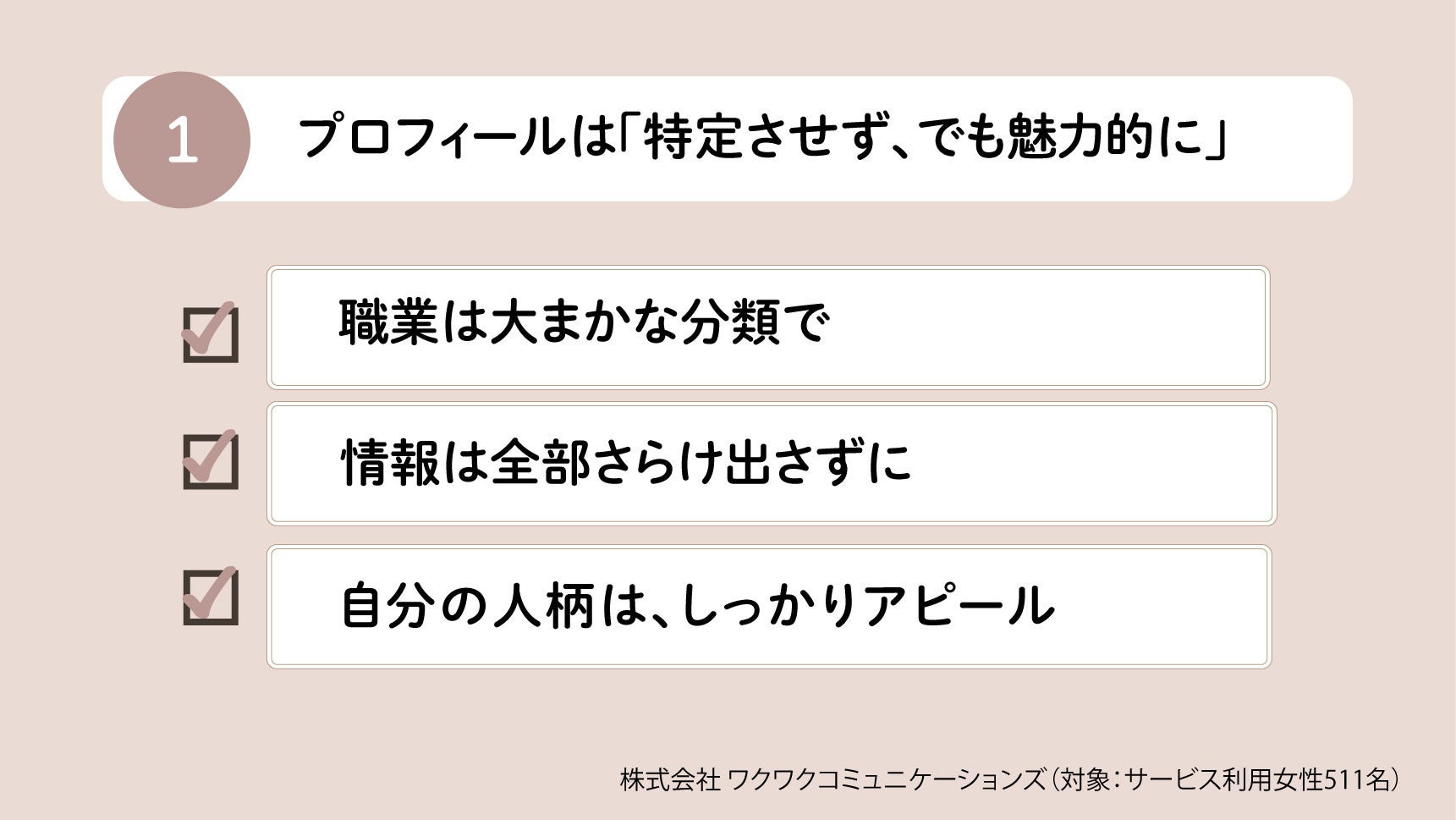 【鉄則ルール①】プロフィールは「特定させず、でも魅力的に」