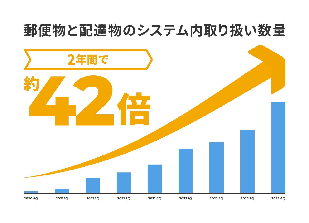 これまで従業員数が1万名を超えるの大手企業様や上場企業様、スタートアップまで幅広くご利用をいただき、弊社のシステム内で管理される配達物や郵便物の数はサービスを開始した四半期と比較して、42倍にまで成長し、その数は現在も毎月増加しております。
