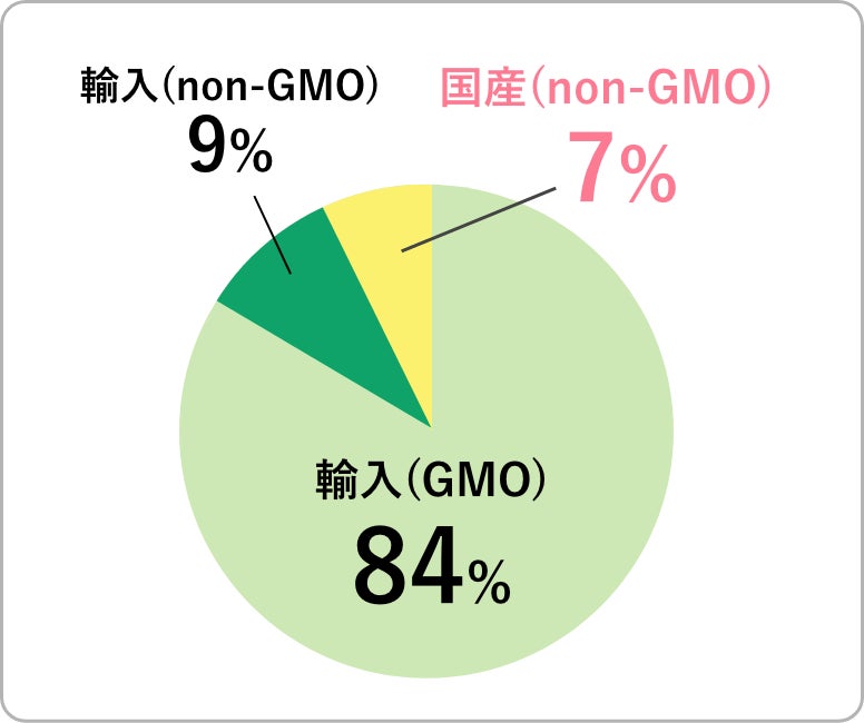 - 大豆の自給率はわずか7%。輸入大豆の9割以上が遺伝子組み換えという現実。