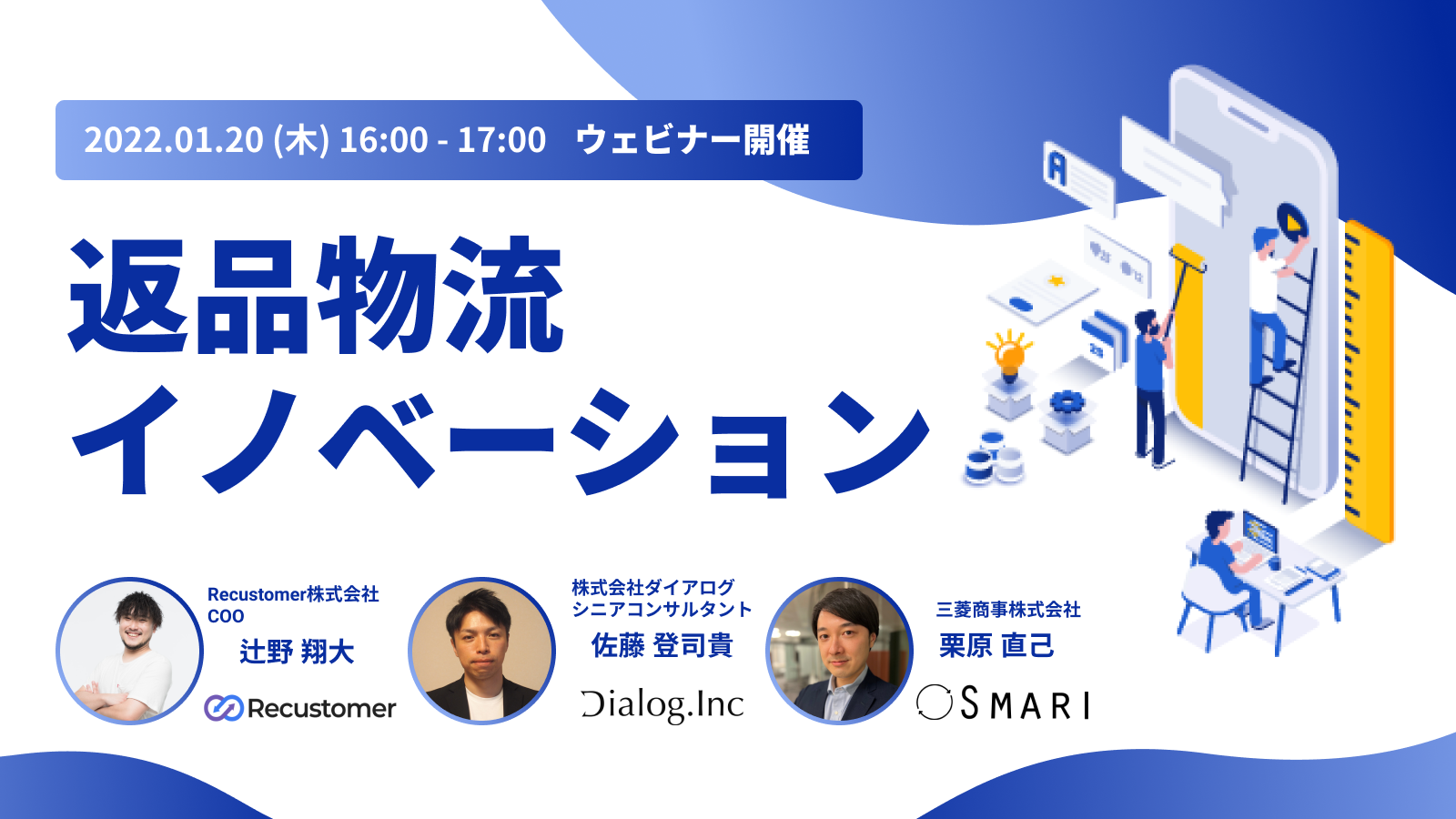 サービス連携に際して、三菱商事社 栗原直己氏・ダイアログ社の佐藤 登司貴氏にご登壇いただき「スムーズな返品・返送フロー」や「返品商品の適切な対応・処理方法」を実現させるオペレーションや活用サービスをご紹介するウェビナーを開催いたします。返品物流を最適化したいと考えている事業者の皆様はぜひご参加ください。