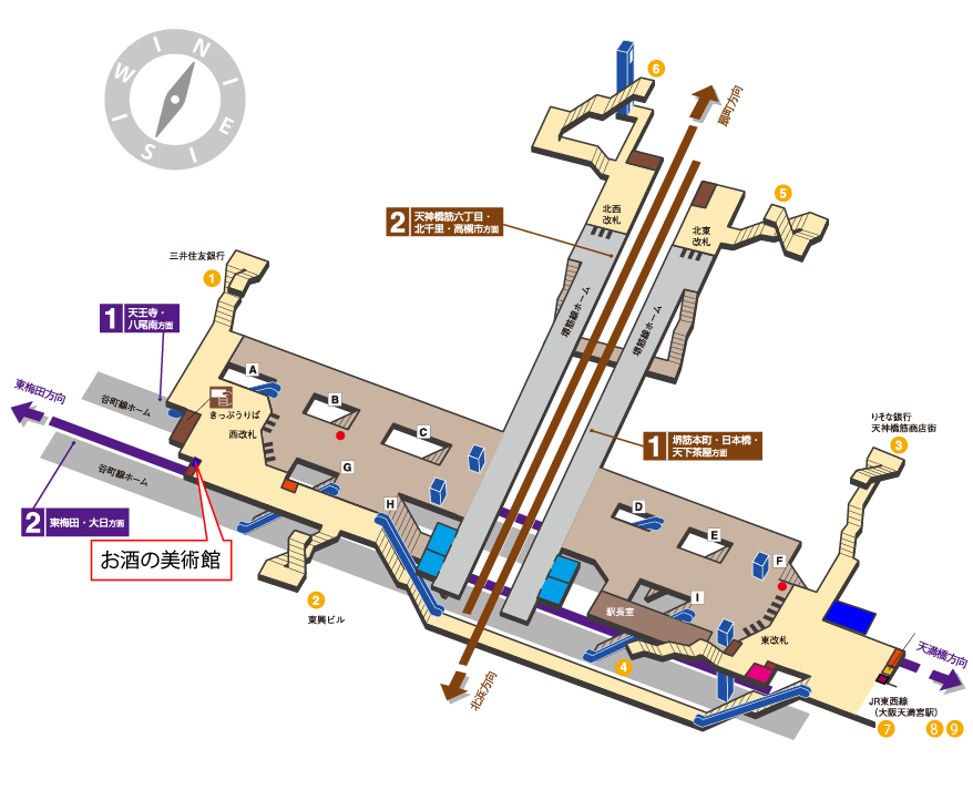 Osaka Metro谷町線・堺筋線南森町駅 西改札外すぐ
