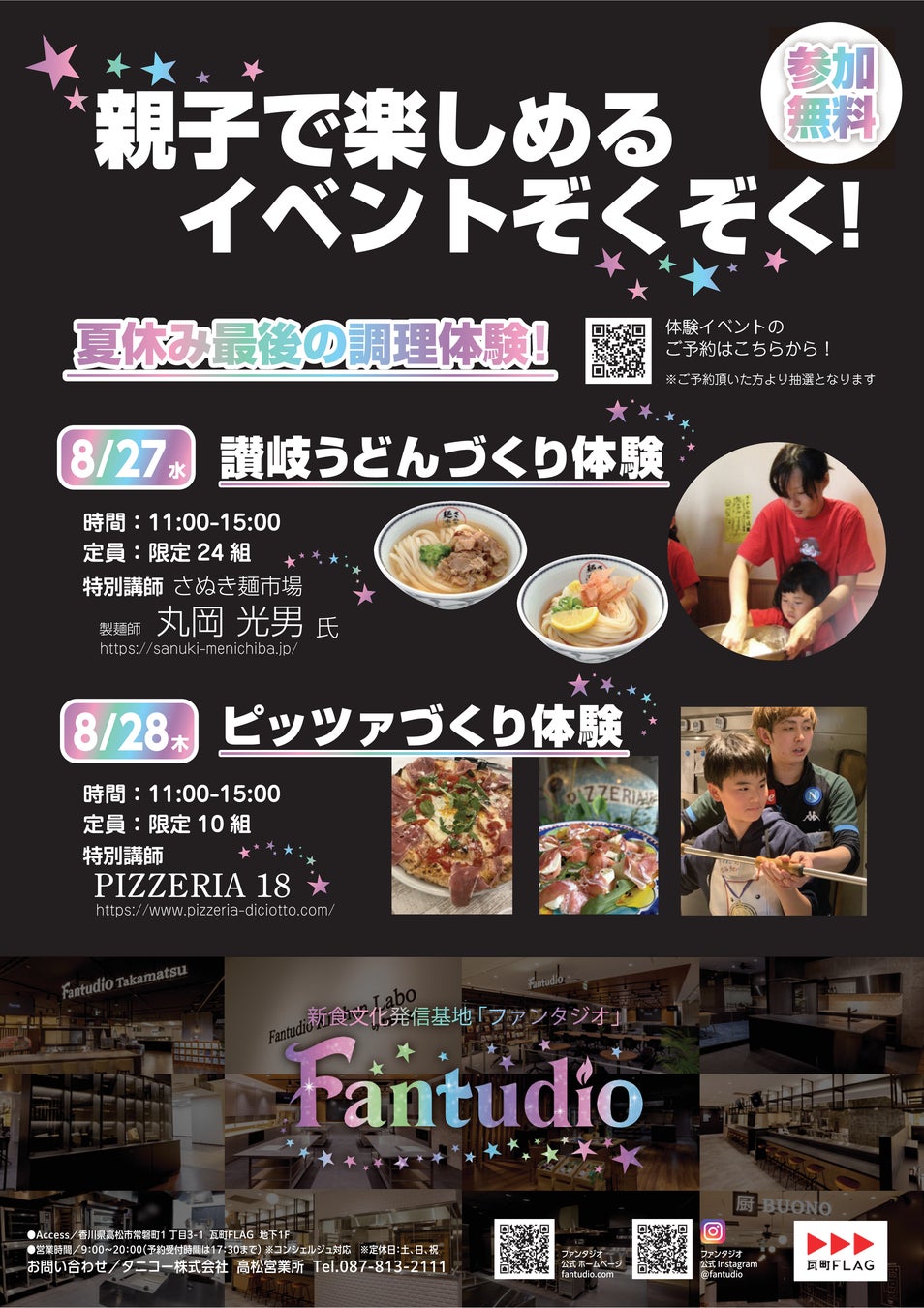 8月27日(水)に地元の皆さまへ初披露となる Fantudio Takamatsu。グランドオープニングイベントとして、飲食店POP UPと、親子調理体験を行います。