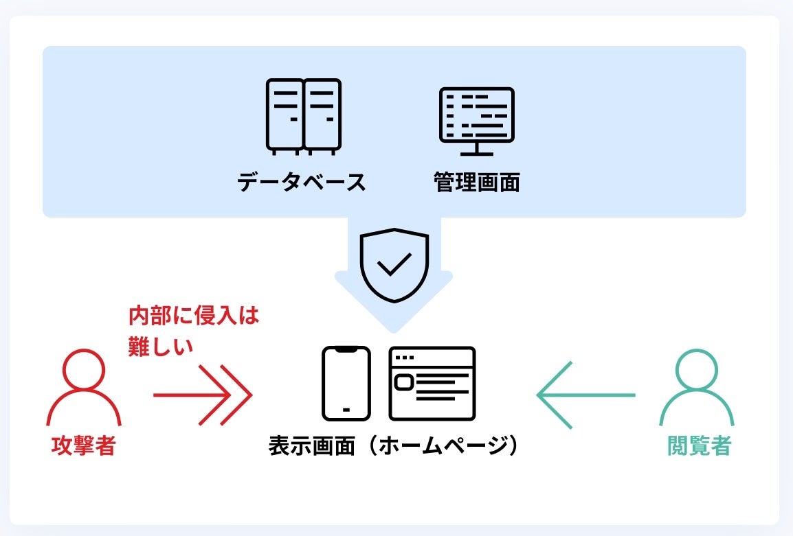 純粋にコンテンツを管理するためだけのシステムであり、フロントエンドとバックエンドが独立しています。