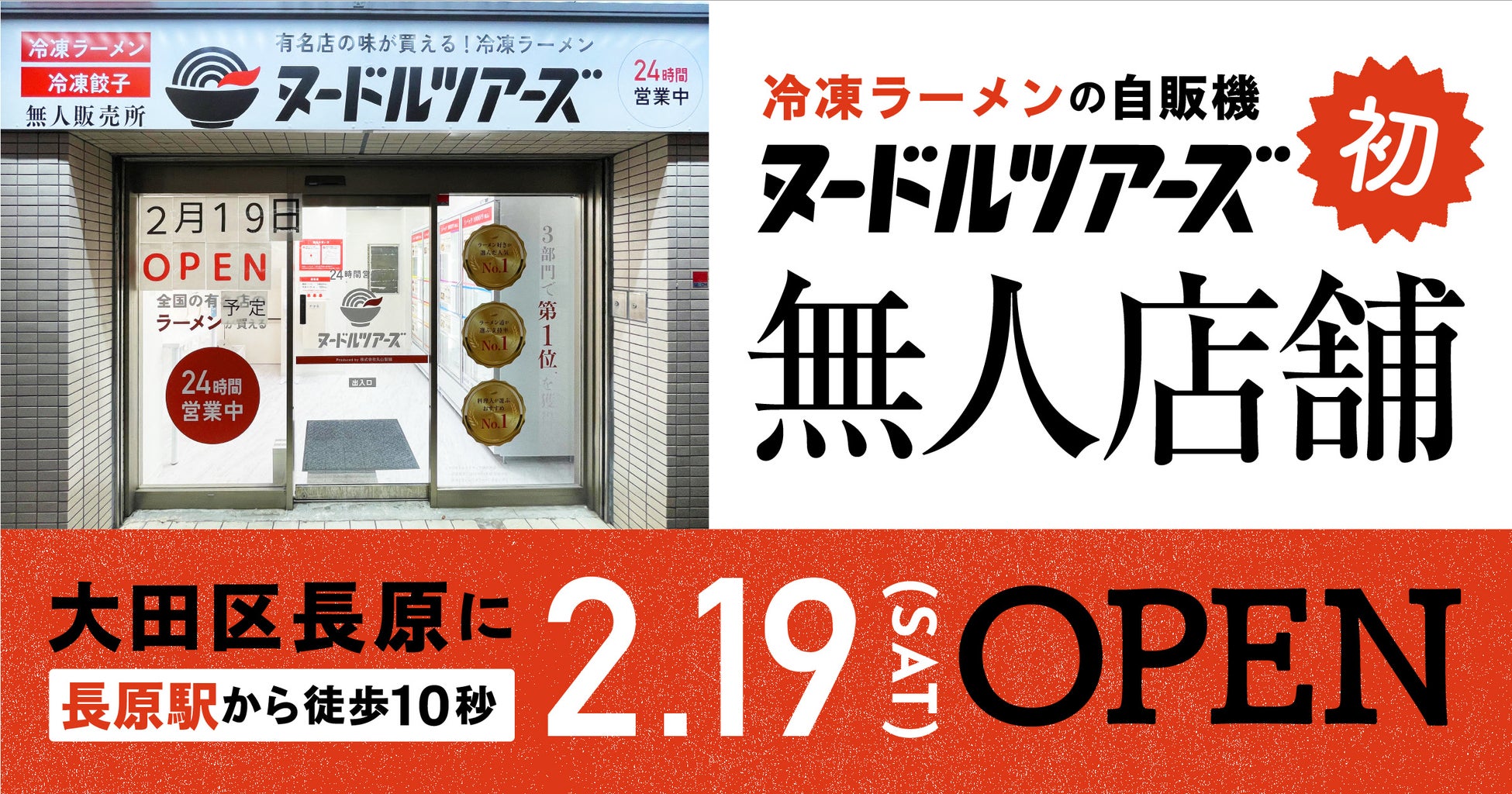 【東京都内で初出店!】ヌードルツアーズ初の無人店舗が大田区長原に2月19日よりオープン!更なるお客様満足度向上に貢献します!