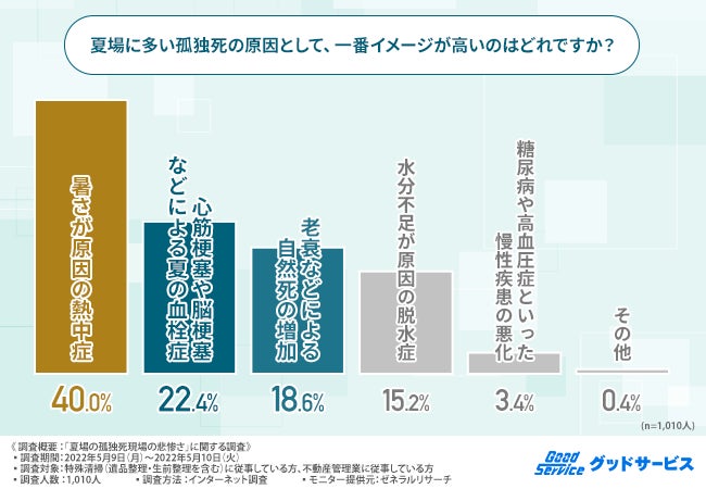 夏場に多い孤独死の原因は『暑さが原因の熱中症(40.0%)』