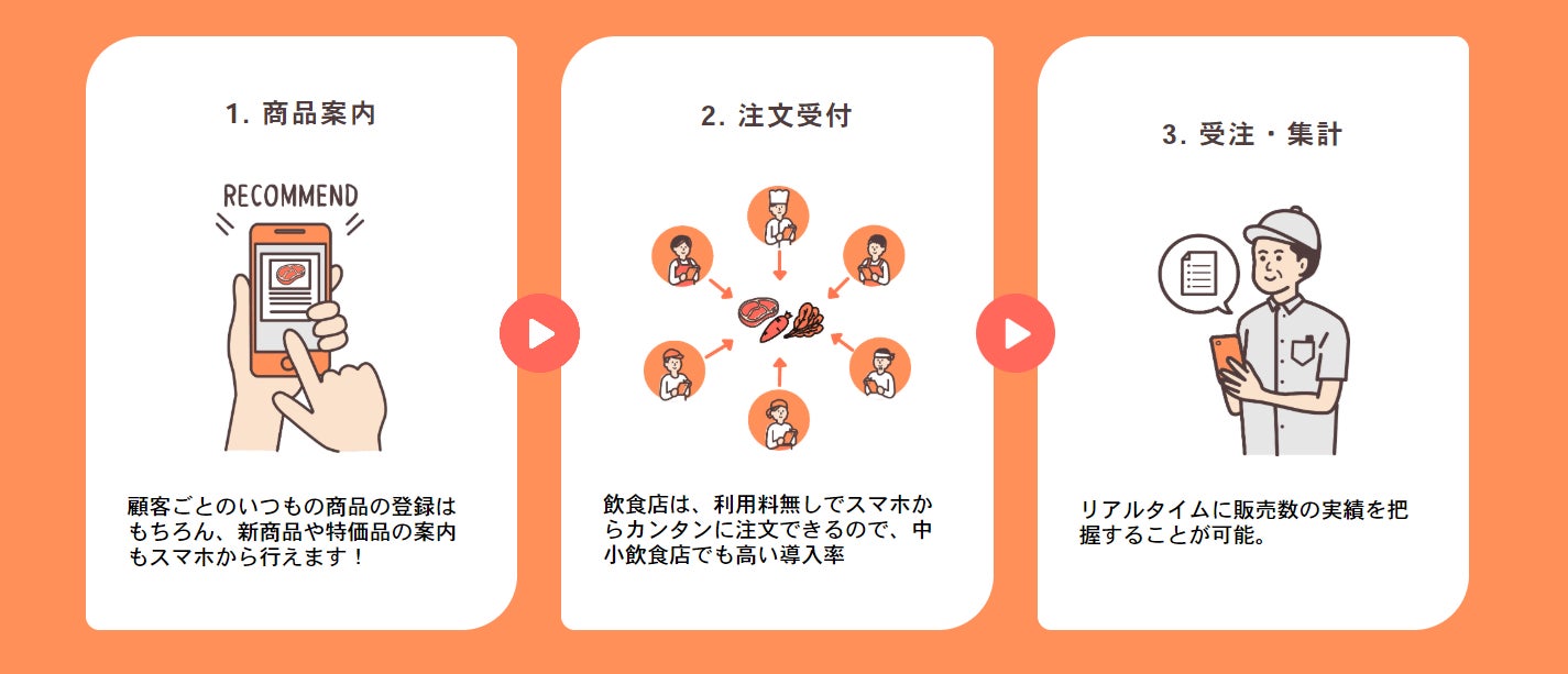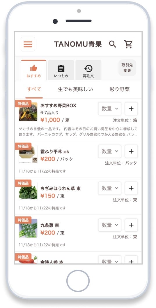 『タノム』は飲食店と食品卸売業者間の受発注をPCやスマートフォンで管理可能な、非接触営業・受発注管理システムです。