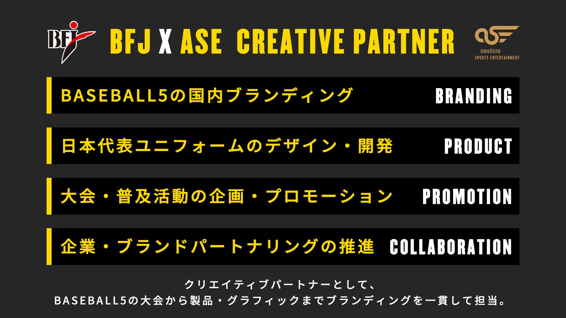 この度、アーバンスポーツであるBaseball5の国内公式事業の推進において、アマダナスポーツエンタテインメントが培ってきたスポーツブランディングやコミュニティーマーチャンダイジング、総合野球事業のノウハウを活かし、野球・ソフトボール文化の拡大のため、クリエイティブパートナーとして合意しました。