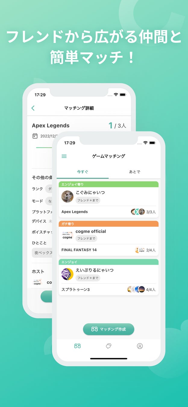 ・信頼できるゲーム仲間ができるスマホアプリ「cogme」