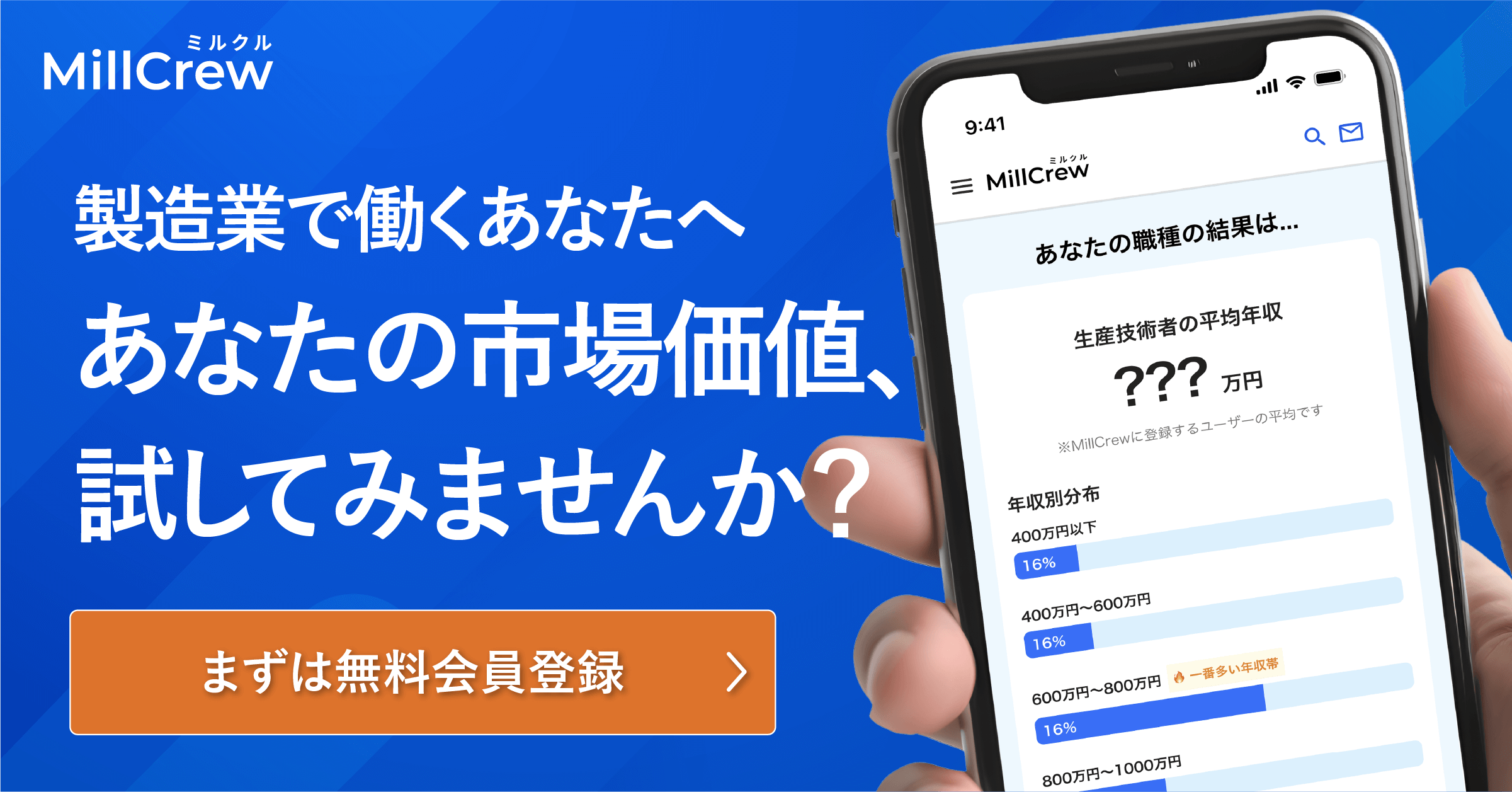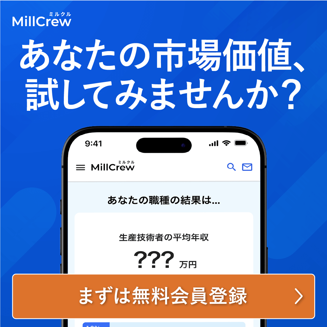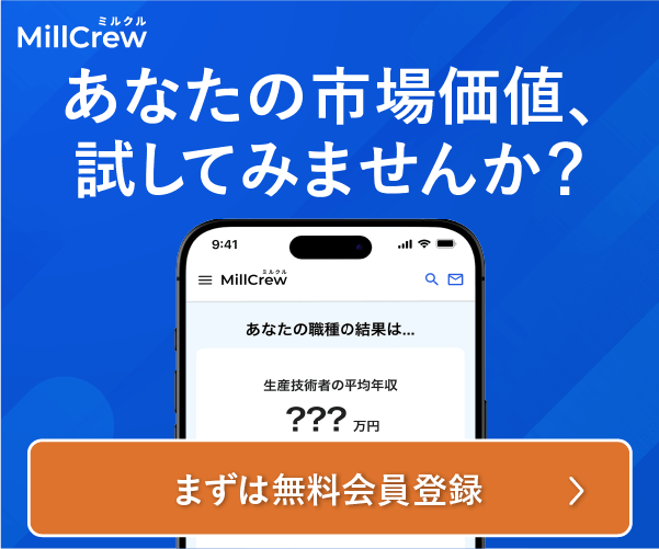 MillCrewが提供する本ツールは、厳正な審査を通過した製造業の技術者データを基に、職種ごとの年収分布や平均値を算出します。ご自身の現在の年収と比較することで、「同職種でのキャリアアップを狙うか」「別職種へ転向すべきか」の判断材料として活用できます。
