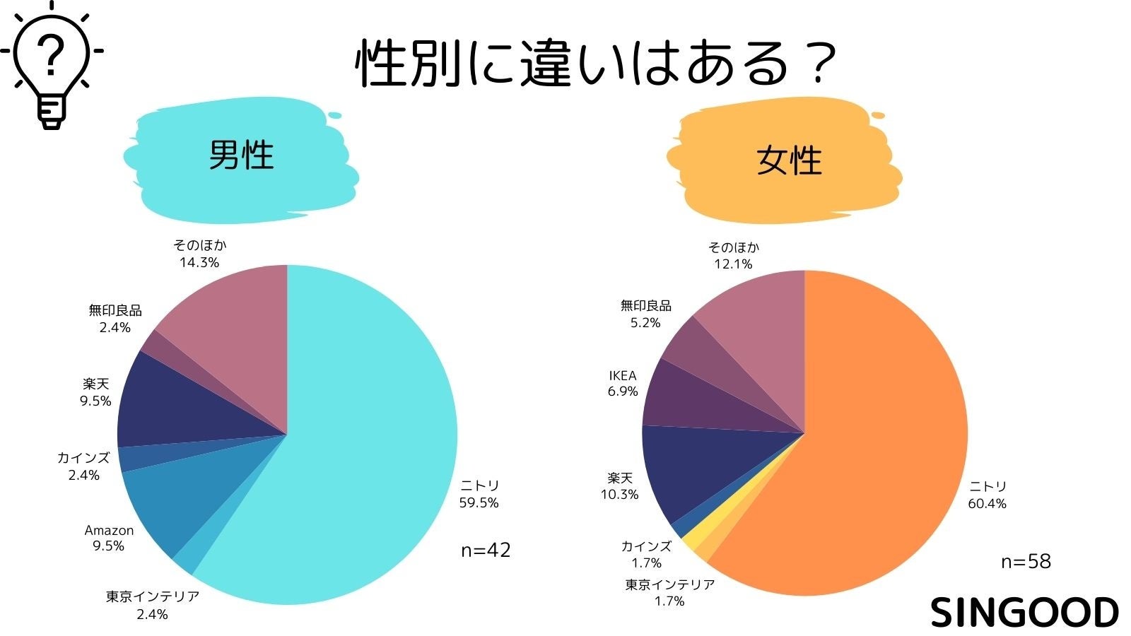 男女でベッドを購入するお店に差があるのか見てみましょう。