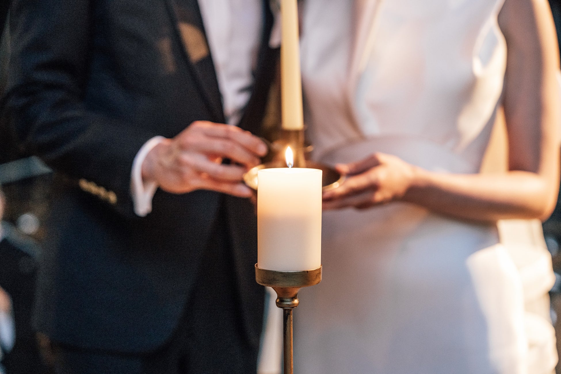 ふたりはゲストからのキャンドルの光を受け継ぎ、これから人生を共に過ごしてゆくという意味を込め、祭壇の大きなキャンドルに火を灯すセレモニーです。
