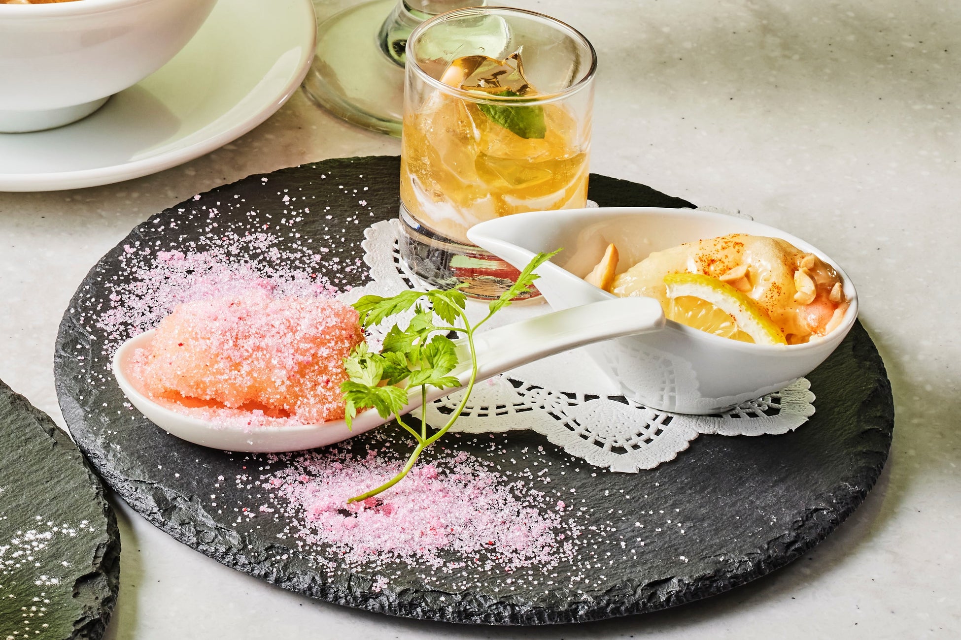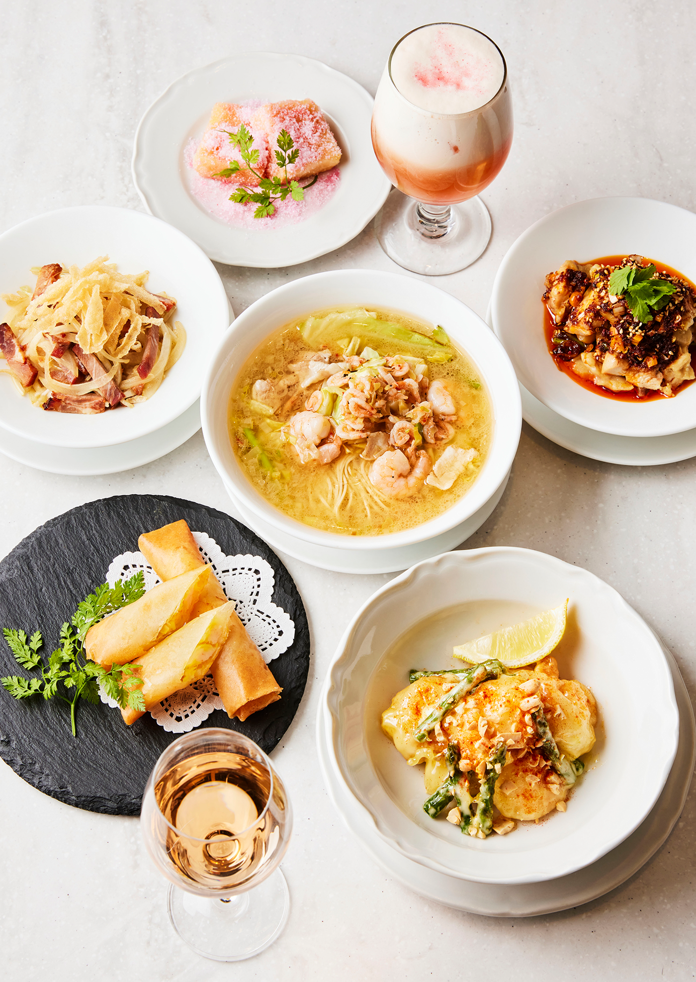 - 桜花泡茶(インファフォームティー):ほのかに甘い自家製桜シロップと、香り豊かな金木犀が特徴的な桂花烏龍茶を合わせたきめ細やかなフォームティーは、食事と楽しむ中国茶のニュースタンダード。絶妙に混じり合うコントラストを目と舌でお楽しみいただけます。