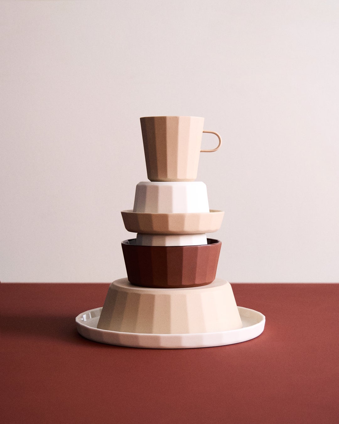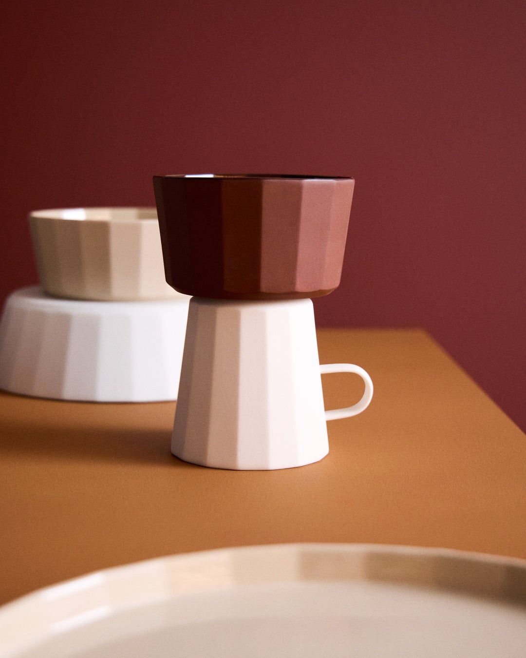 FADEは、韓国の伝統的な瓦屋根から着想を得たテーブルウェアのコレクションです。やわらかく面取りされた無釉の外側と、なめらかな釉薬で仕上げた内側とのコントラストが特徴で、光を受けることで表面に繊細で奥行きのある表情を生み出します。素朴さと洗練を併せ持つ佇まいは、日常の食卓から特別なシーンまで幅広く調和します。