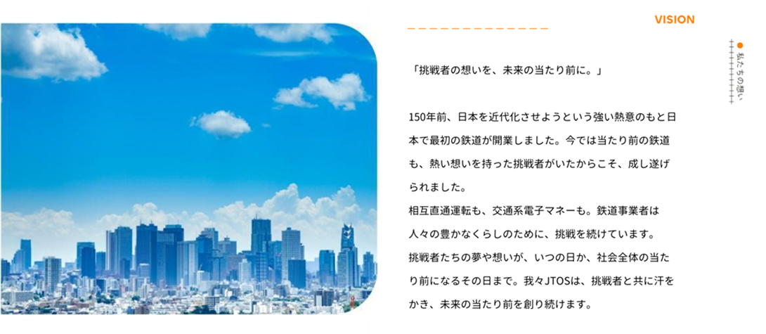 鉄道横断型社会実装コンソーシアム「JTOS」の、ミッション、ビジョン、バリューの言語化及びLP作成をサポート。