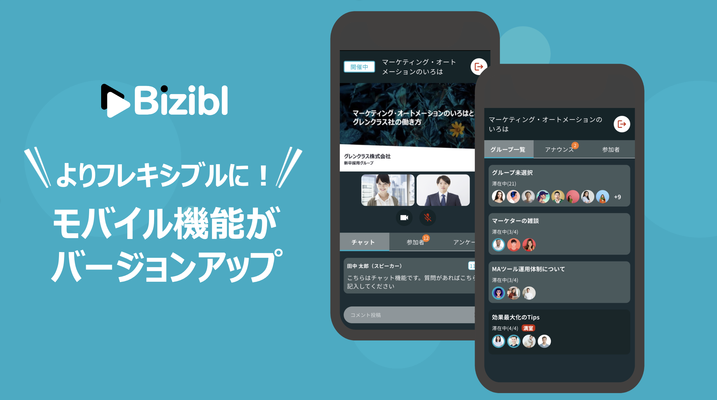 この度のモバイル端末から利用できる機能の拡充によって、参加者はイベント詳細ページの閲覧、申し込みから実際のオンライン参加まで、全てをモバイル上の「Bizibl」で行えるようになり、よりフレキシブルにご利用いただくことができます。