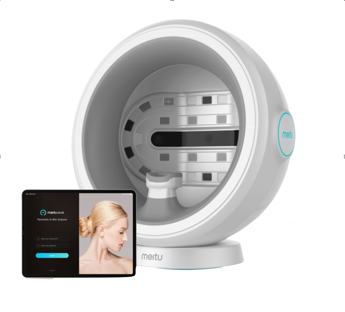 MeituEve(メイツイヴ)は、科学的なアプローチによって開発された肌測定ソリューションです。2021年に日本初上陸した際、当社が日本で初めてこのマシンを導入。最新の画像処理技術とAIを用いた測定アルゴリズムにより、お客様の肌の状態を深く分析します。トラブルが見受けられる箇所の大きさ・数・深刻度などのレポートを元に専門スタッフが、適切なスキンケア・トリートメントを行います。