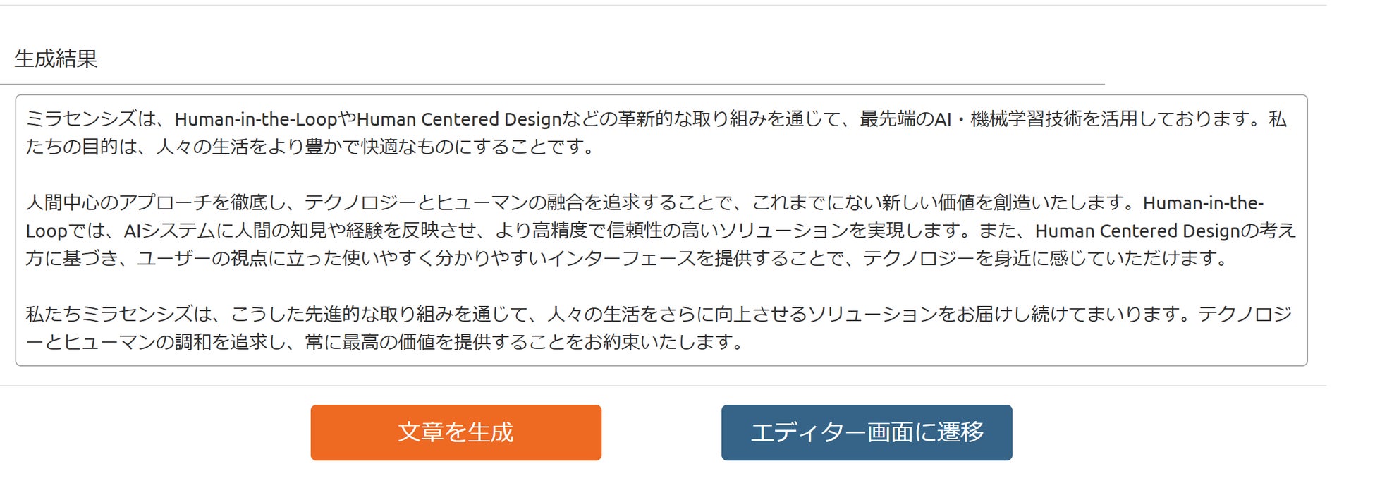 我々はミラセンシズでは、AI・機械学習の最新技術を常にリサーチし、顧客の皆様が利用できるプロダクトや機能としてリリースを行っています。今後は生成AIや画像解析等の技術をさらに活用し、AI editorや他プロダクトの機能拡張を行ってまいります。