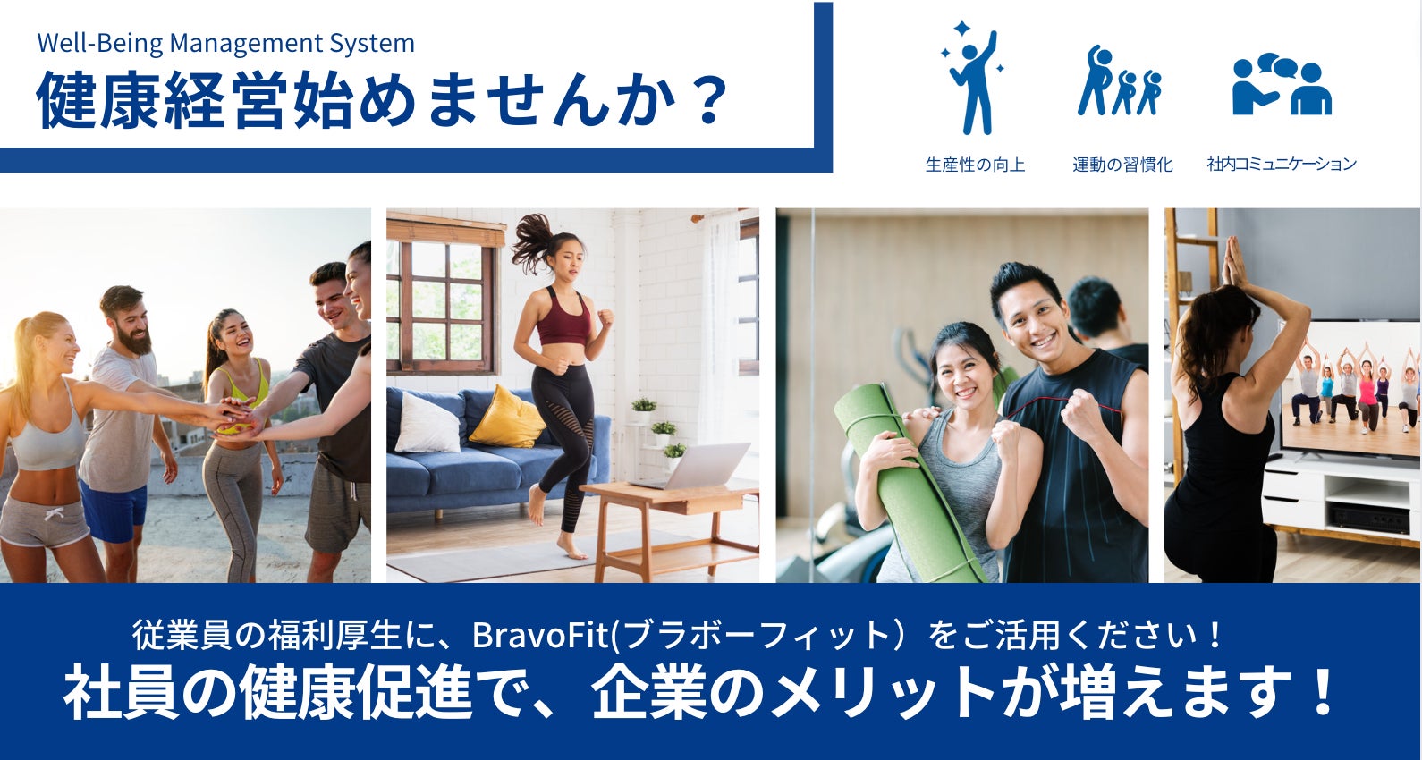「BravoFit」は、心身ともに健康で豊かな人生を目指すためのWell-being福利厚生サービスであり、健康経営に取り組む企業様のニーズに応える内容となっています。