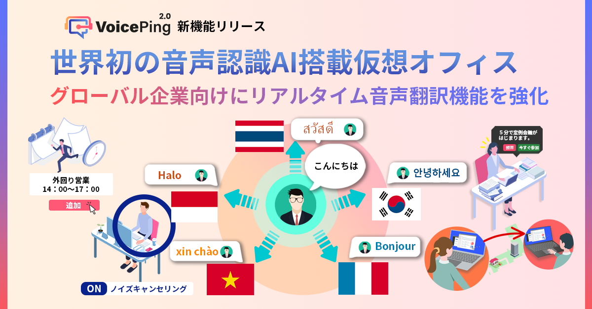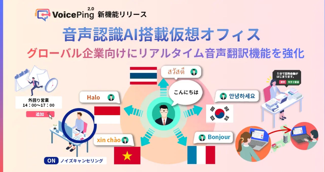 文字起こし・音声翻訳AIを搭載したメタバースオフィス VoicePing がグローバル企業の海外連携支援のための大幅アップデート