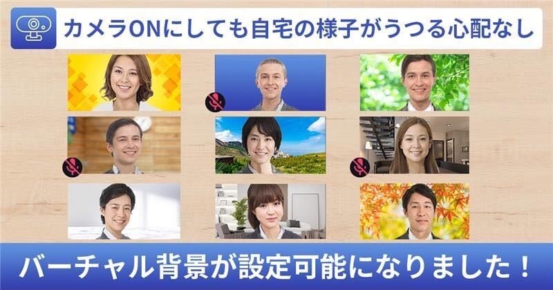 カメラのサイズを5段階で変更し、形も丸&長方形に変更することが可能で、さらに背景を好きな画像に設定することができます。各アバターポジションを移動させることにより自由な画面レイアウト設計が可能です。