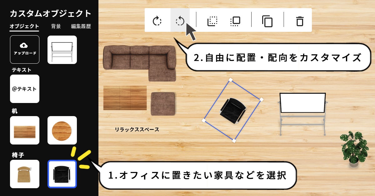 仮想オフィス空間をアプリ内で自由にカスタマイズできるようになりました。