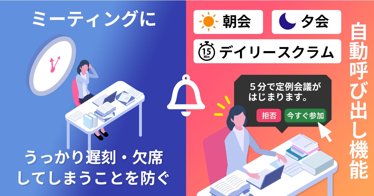 定例会議の時間帯と参加メンバーをあらかじめ設定し、時間になるとメンバーを自動で呼び出す機能がリリースされました。