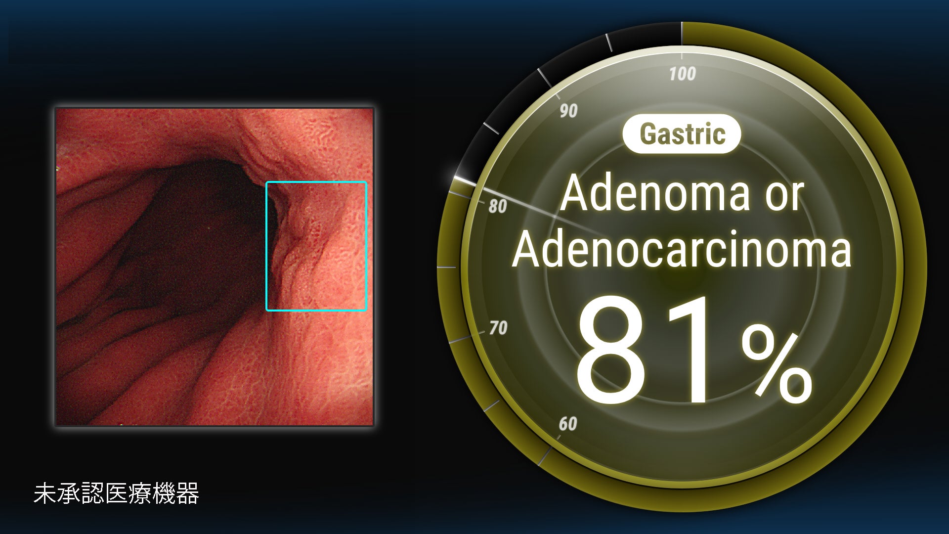 内視鏡検査において、見逃しが5~25%存在すると言われる(Hosokawa et al. Hepatogastroenterology. 2007 ;54(74):442-4.)胃がんの診断を支援するAIを開発しています。100施設以上の病院の協力により、研究開発を行っております。がんの見逃しのない世界を目指して日々の事業に取り組んでいます。