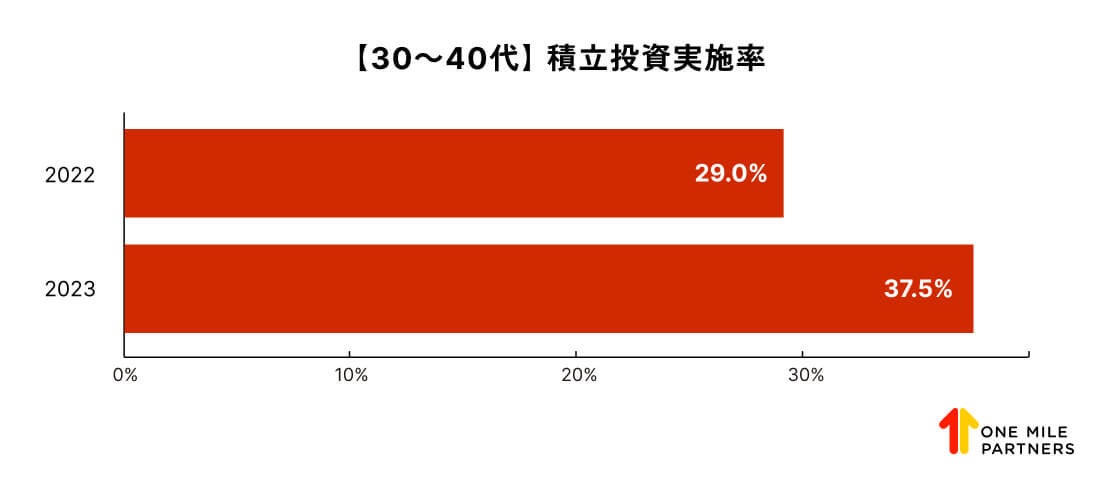 2023年の30~40代における積立投資実施率は3割を超え、8.5ポイント上昇