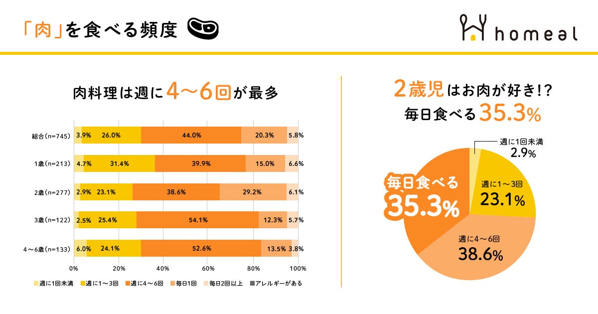 「肉料理は週に4~6回が最多。2歳児はお肉好き!? 毎日食べる35.3%!」