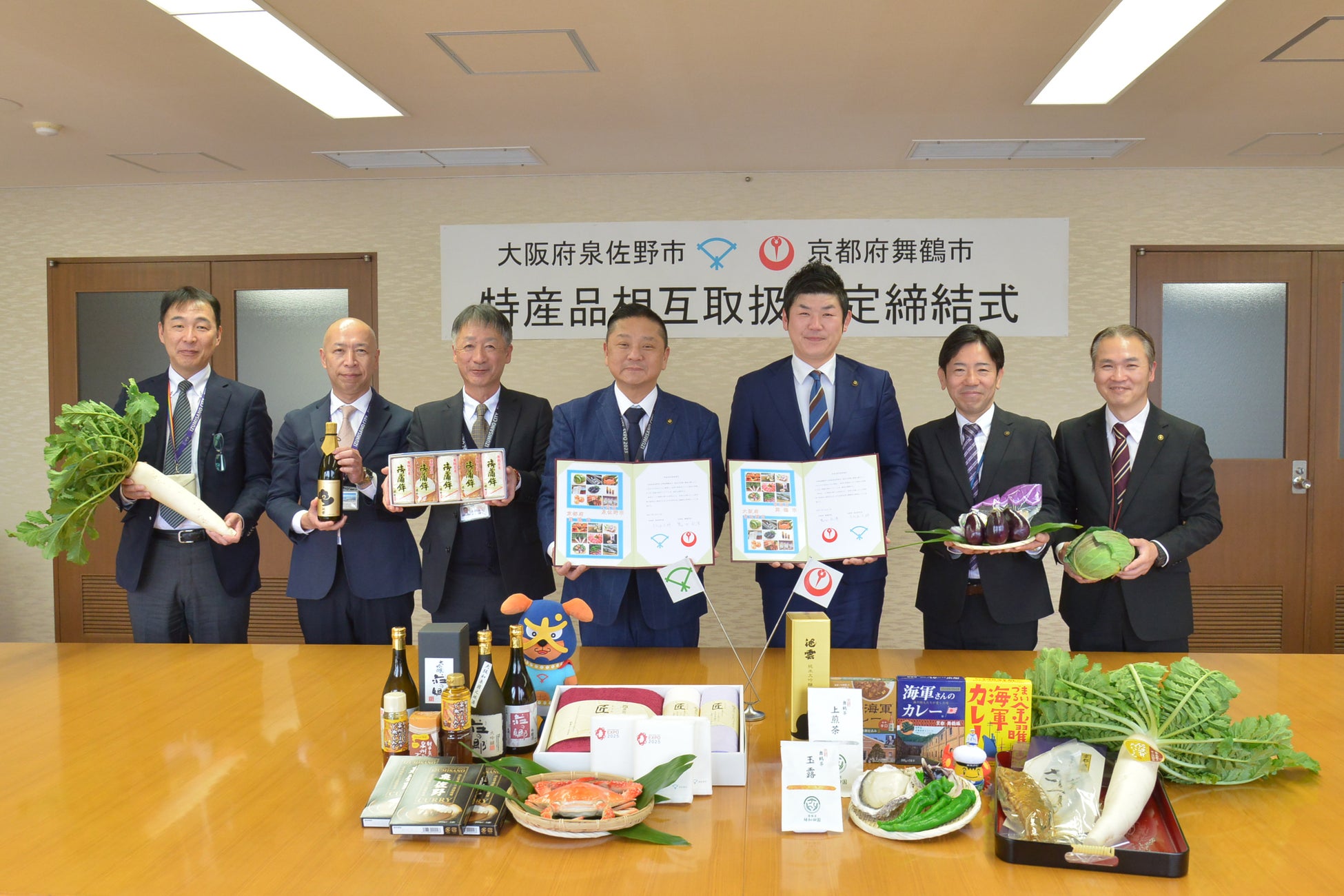 京都府舞鶴市と大阪府泉佐野市は、お互いの地域の素晴らしい特産品を通じて、相互交流並びに特産品のPR及び販路拡大を図るため、2025年1月27日付で「特産品相互取扱協定」を締結しました。