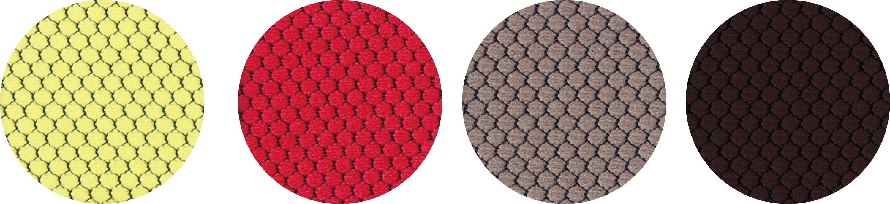 左から、レッド(座面ディープレッド)、トープ(座面トープ)、ブラック(座面ブラック)、イエロー(座面マスタード)