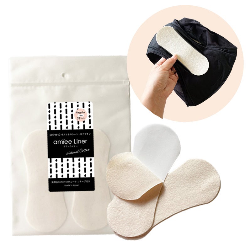 通気性が一般的なおりものシートの176倍以上ある「布製なのに使い捨て」「使い捨てなのにエコ」なコットン100%*のおりものシート・ナプキン。ホワイトは無漂白コットンを使用しているためよりナチュラルな仕上がり。テープ付きなのでショーツや紙ナプキンにワンタッチ装着が可能です。ゴミとして燃焼する際に排出されるCO2量とコットン生育時に吸収するCO2量が同量のカーボンニュートラル。土に埋めれば3ヶ月程度で土壌に還る生分解性もあります。(*表面材。アミーライナーの構成材料は表面材のコットンとテープのみです。)