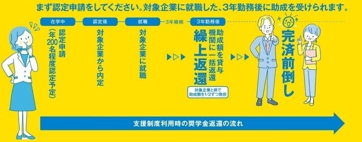 石川県では、県内企業へ就職する学生の奨学金返還を支援しています。対象企業へ就職し、3年間継続して就業すると、最大で200万円の助成を受けることができます。
