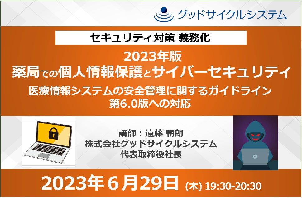 株式会社グッドサイクルシステム(本社:東京都渋谷区、代表取締役社長:遠藤 朝朗)は、薬局経営者・薬剤師向けにオンラインセミナーを無料で開催します。