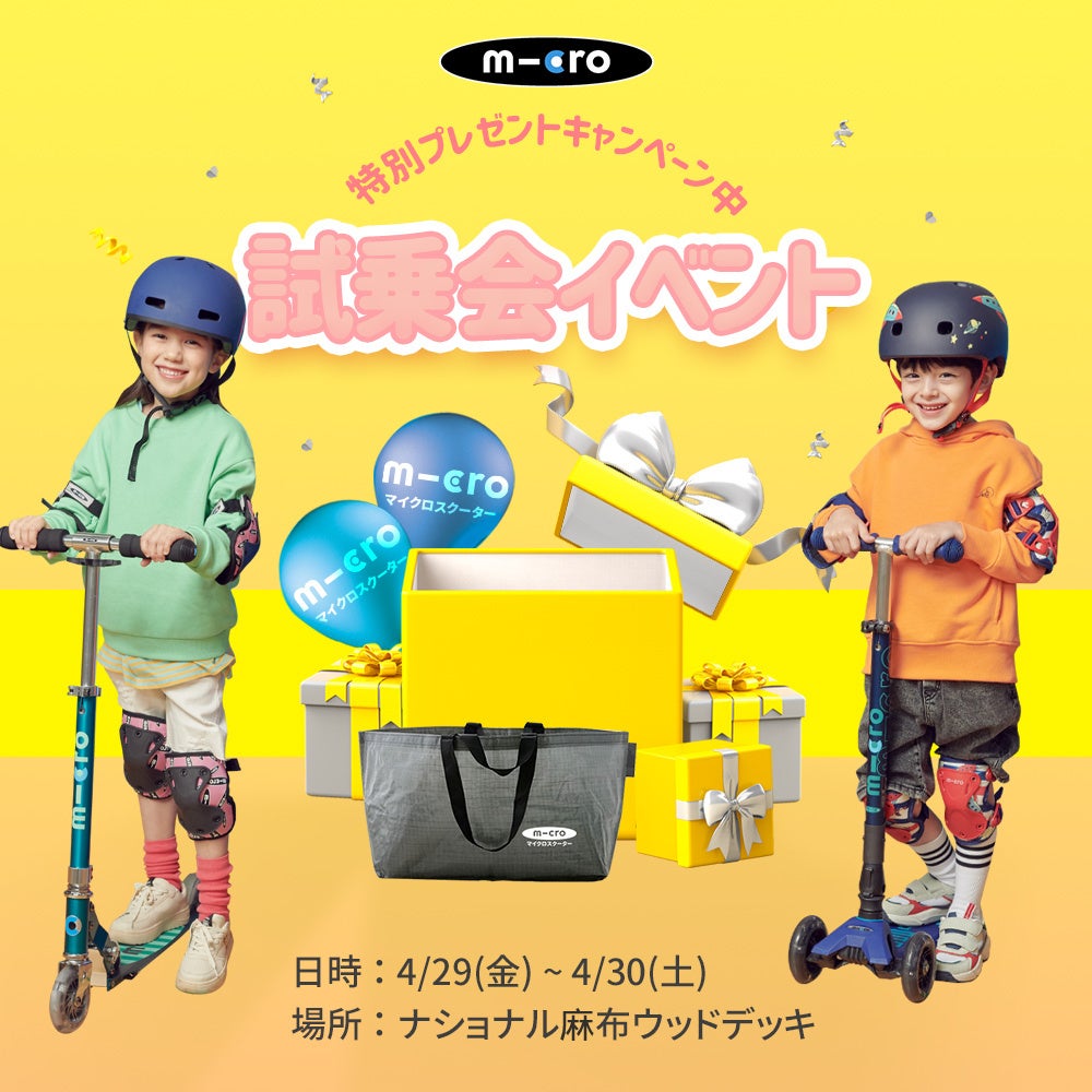 世界のキックボードブランド マイクロスクーター・ジャパン㈱(本社:東京都港区、代表取締役:杉崎正義)では、2022年4月29日(金)~2022年4月30日(土) 2日間、【NATIONAL AZABU】ウッドデッキのイベントスペースにて試乗体験 やプレゼントキャンペーンを開催します。