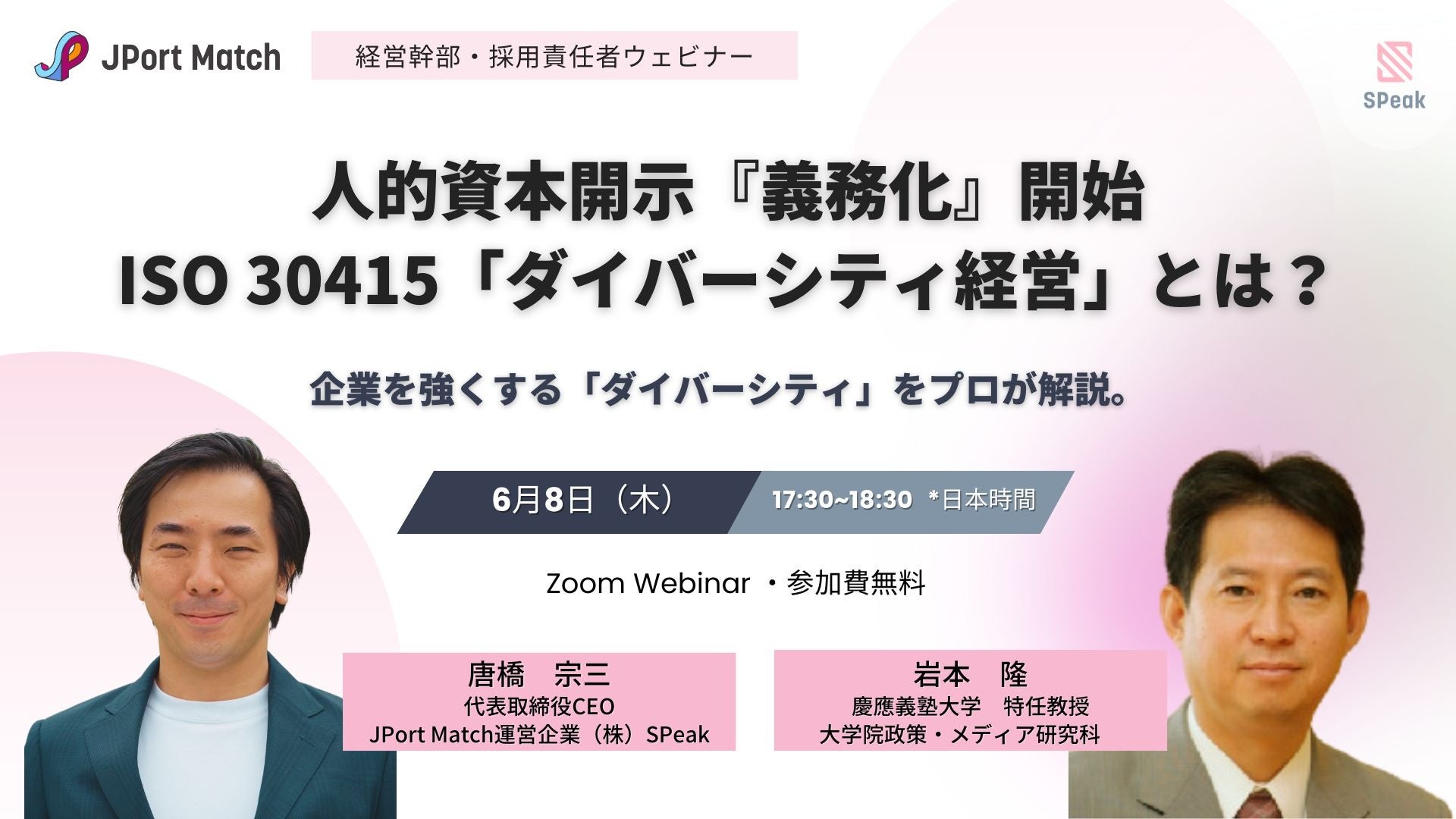 SPeak、人的資本開示義務化で注目の「ISO 30415 ダイバーシティ経営」ウェビナーを初開催