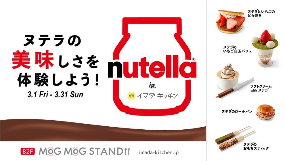 新製品の発売を記念して「nutella in IMADA KITCHEN」と題した期間限定イベントを3月31日(日)まで開催します。ヌテラを使ったオリジナルメニューをぜひお楽しみください!