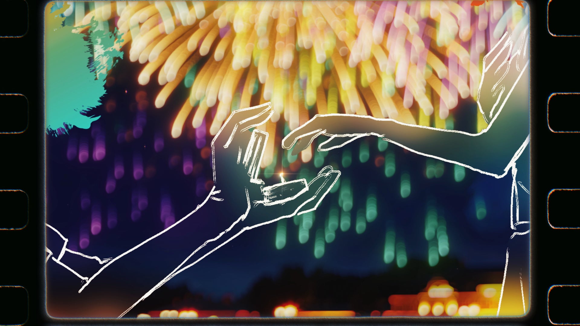 人物のシルエットに色が弾けるシーン、花火の下で差し出される手のクローズアップなど、"希望を手渡す瞬間"をビジュアル化。記憶のスクラップブックをめくるような温かみのある映像に仕上がっています。