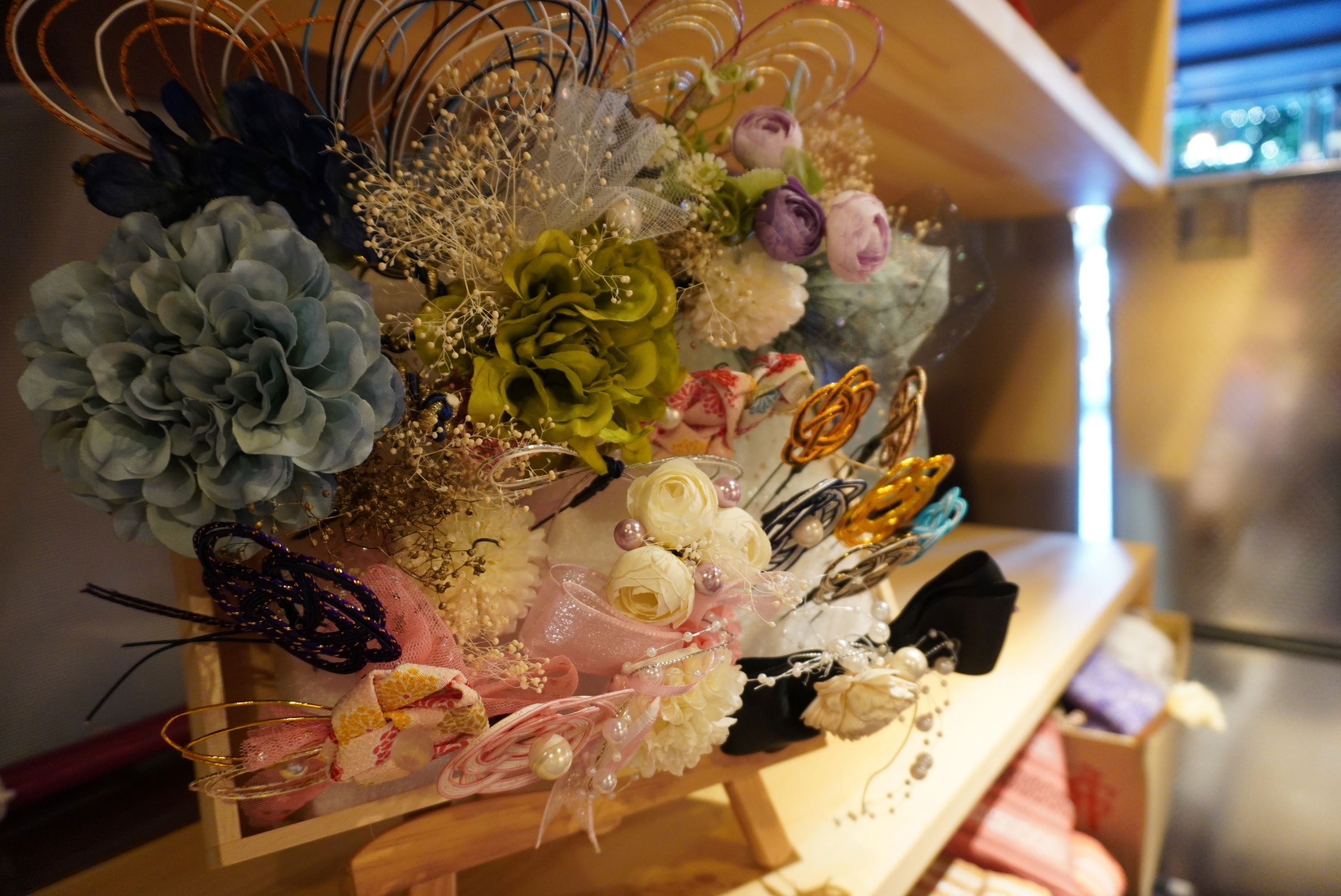 ミモザではおしゃれなレース着物から、今でも人気のあるアンティーク着物まで、小さな店内には様々な着物や小物が並んでいます。あなたのための特別な一枚をぜひ見つけてください。