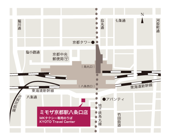 (地図 京都駅八条口から八条通りを渡ってすぐ)