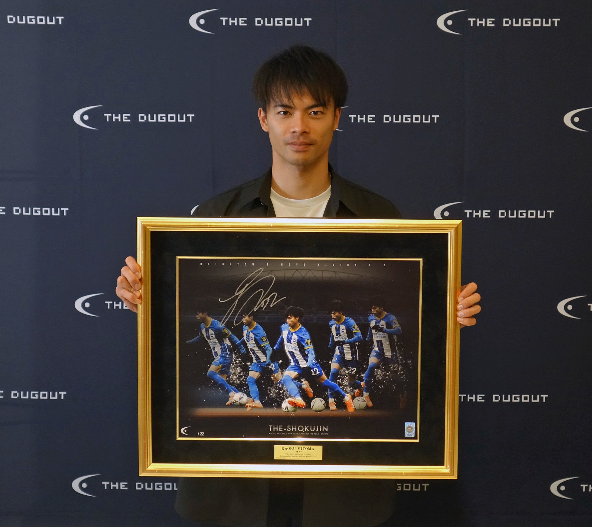本パートナーシップを通じてザ・ダグアウトは、三笘選手の直筆サインが入ったユニフォーム、アート作品、スパイク、ボール等の独占的な供給元として、幅広いラインナップを世界に届けてまいります。