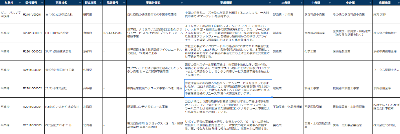1.採択事業者リストを元に採択事業の傾向を分析