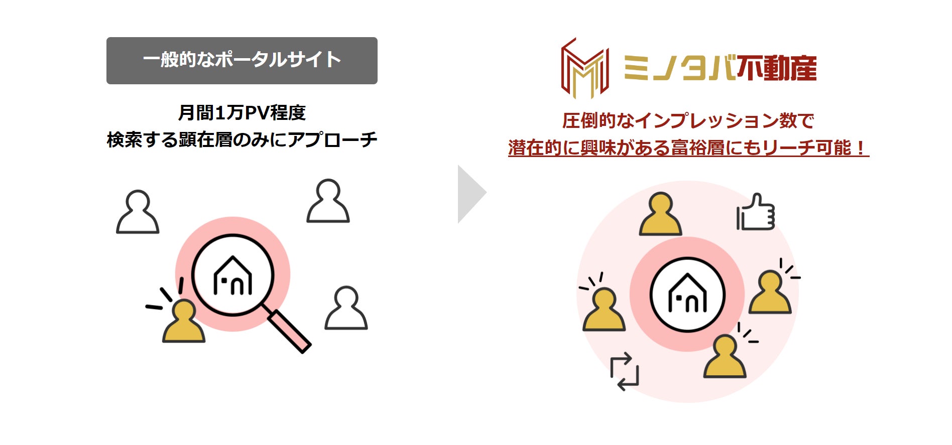 田端信太郎氏と箕輪厚介氏のSNS総フォロワーは90万人超、月間インプレッションは約6500万人で、売主様の物件をXでポスト致します。