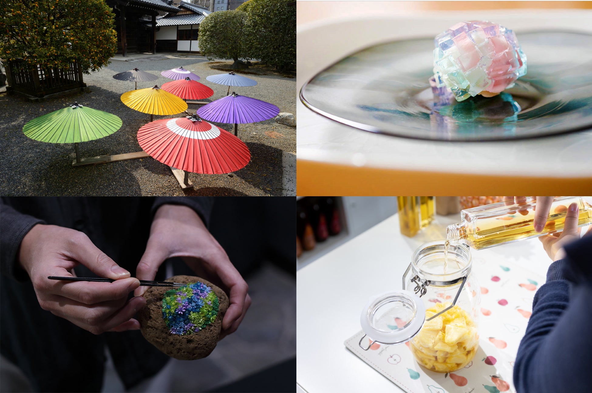 約160年続く京和傘の老舗でのオリジナル番傘作りプランです。素竹の良さを活かしたシンプルな番傘を、紙色から選び、和紙を貼る胴張りを職人のレクチャーを受けながら体験。100%植物由来の素材を使い、高度な職人の手仕事で仕上げられる作品は、この世にふたつとない希少な京和傘と思い出になります。