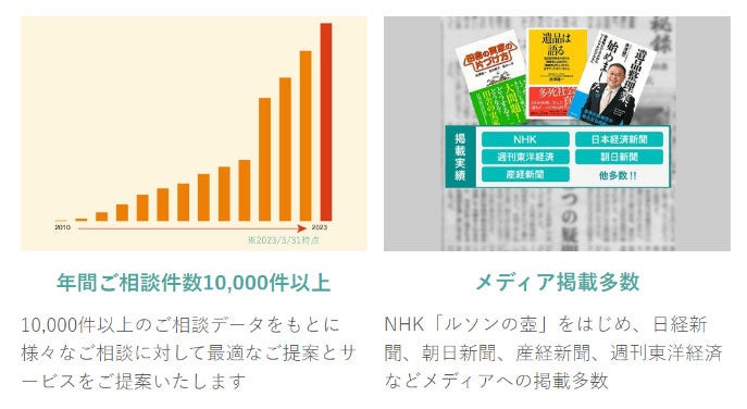 全国で20店舗以上を展開、年間10,000件を超えるご相談実績を誇ります。遺品整理・相続・不動産売却等に伴う不用品処分や残置物撤去を中心に、ハウスクリーニングやお仏壇の処分等も含め、ライフステージの変化に伴う様々なお客さまのお悩み解決をワンストップで対応してまいりました。