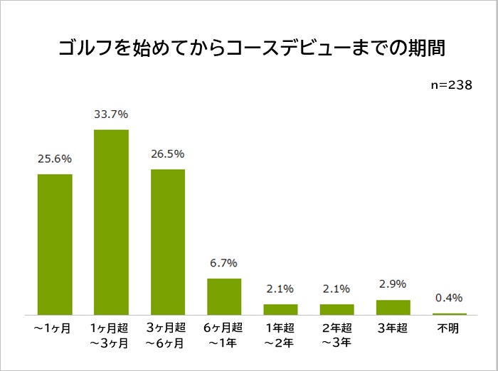 - コースデビューはゴルフを始めてから「1ヶ月超~3ヶ月」