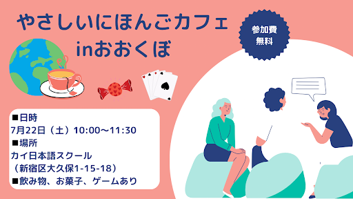 <無料>国際交流×地域交流 「やさしいにほんごカフェinおおくぼ」【7/22(土)イベント開催案内】