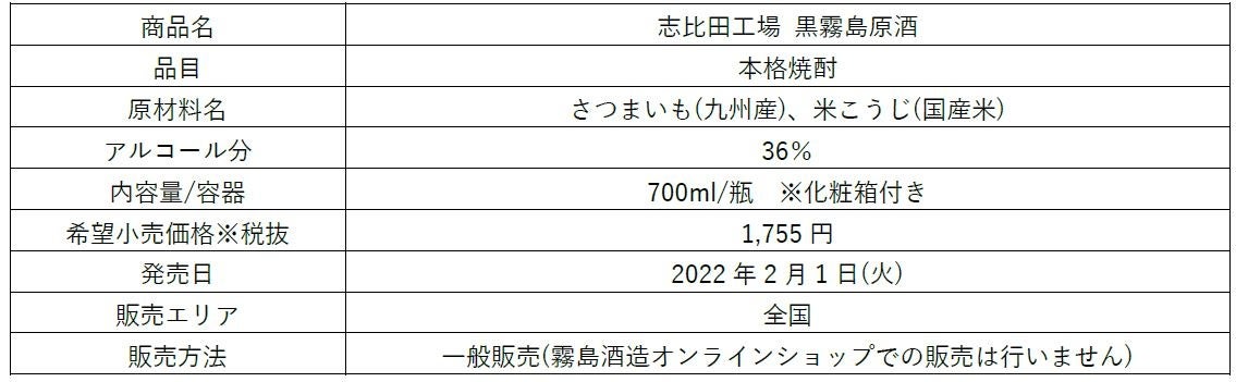 霧島酒造株式会社(代表取締役社長:江夏順行、本社:宮崎県都城市下川東4丁目28号1番)は、『志比田工場 黒霧島原酒』を、2022年2月1日(火)より販売開始いたします。