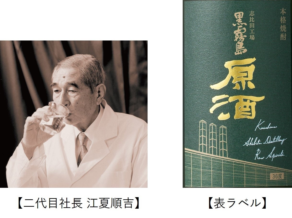 芋焼酎製造の近代化に情熱を注いだ二代目社長 江夏順吉は、清冽な地下水「霧島裂罅水(キリシマレッカスイ)」に恵まれた都城市志比田町に焼酎製造場を建設しました。霧島酒造の焼酎造りに革新をもたらしたこの地で造られた『志比田工場 黒霧島原酒』(※1)(※2)は、蒸留後の黒霧島に一滴の水も加えずに造り上げた本格芋焼酎です。